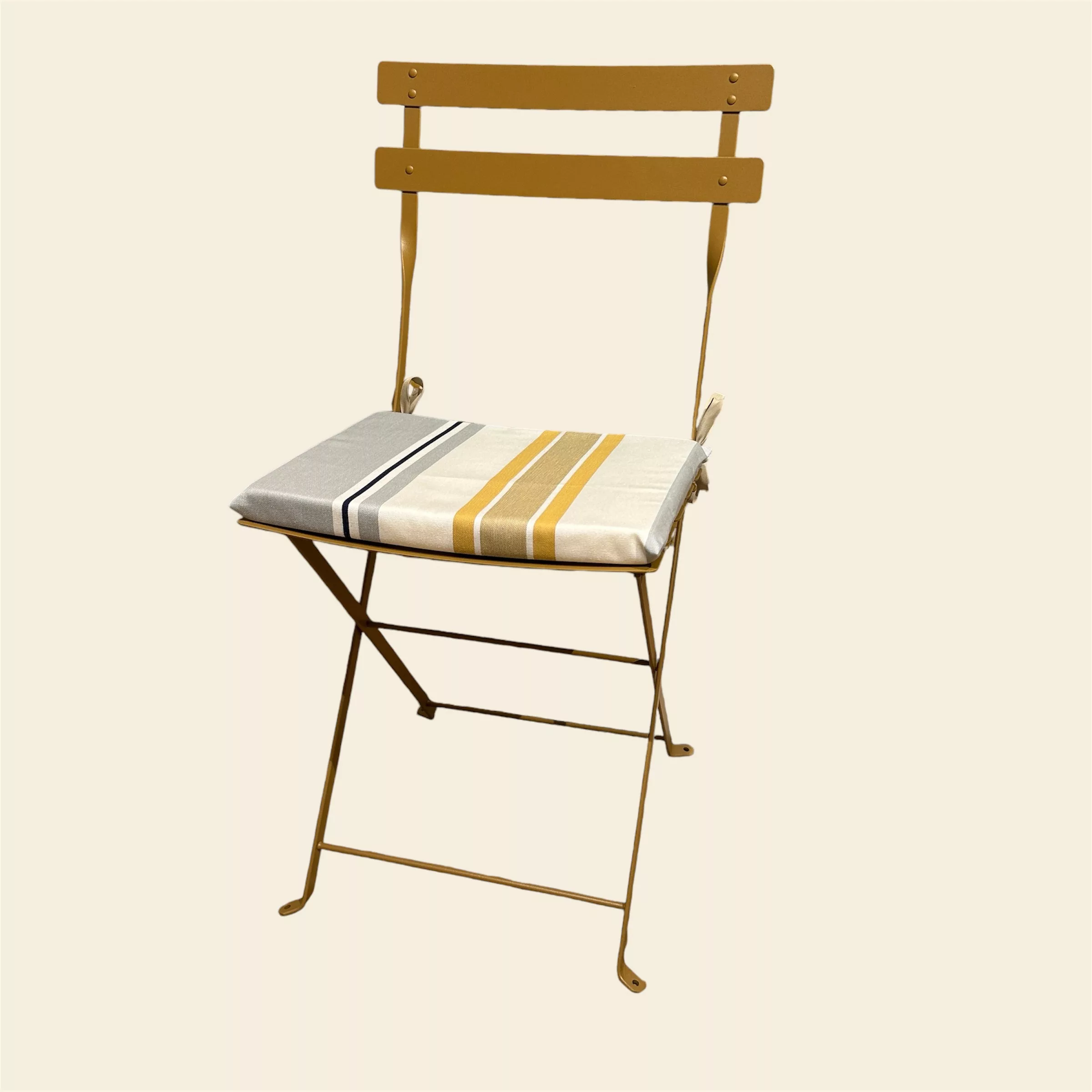 Les galettes de chaise présentent des motifs uniques grâce aux rayures asymétriques de la toile, et chaque taille offre plusieurs variations. Notez que les photos sont non contractuelles : le rendu des motifs peut différer selon les dimensions choisies.