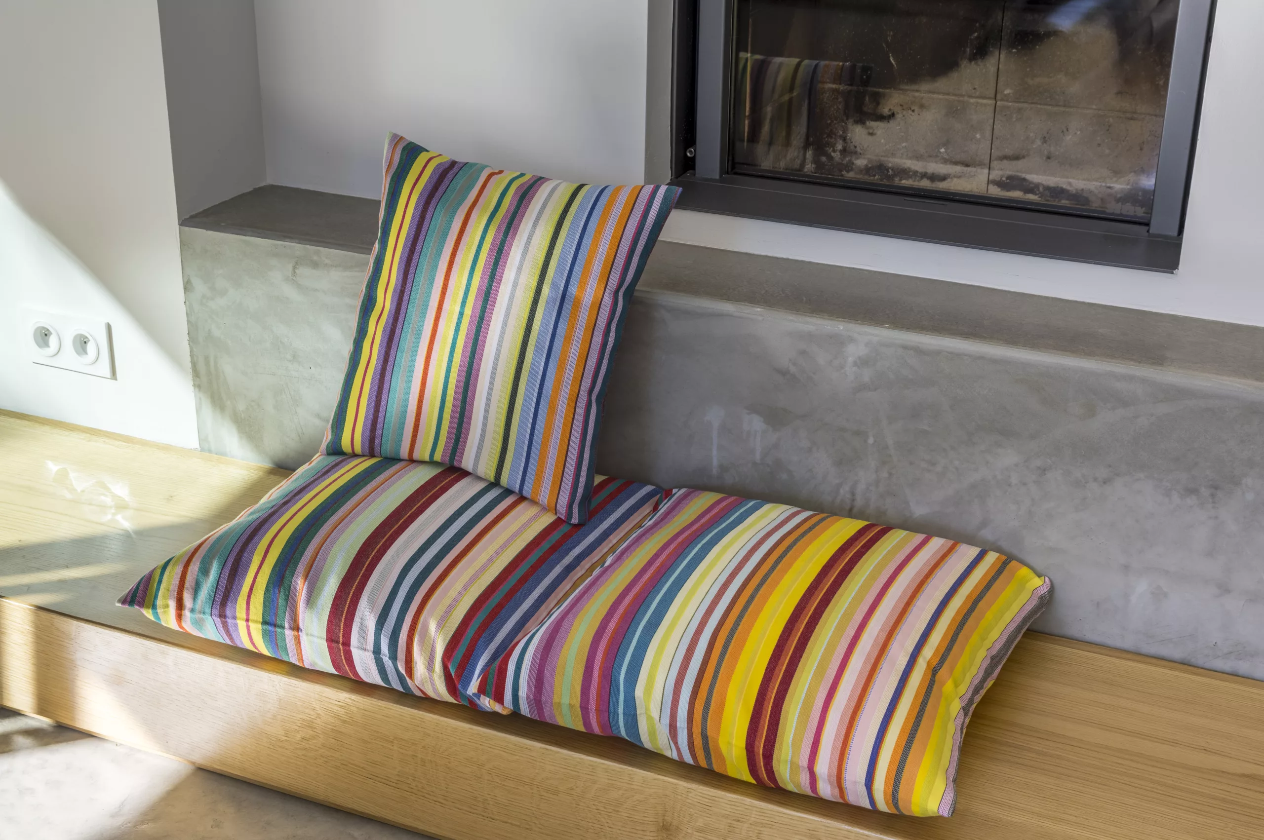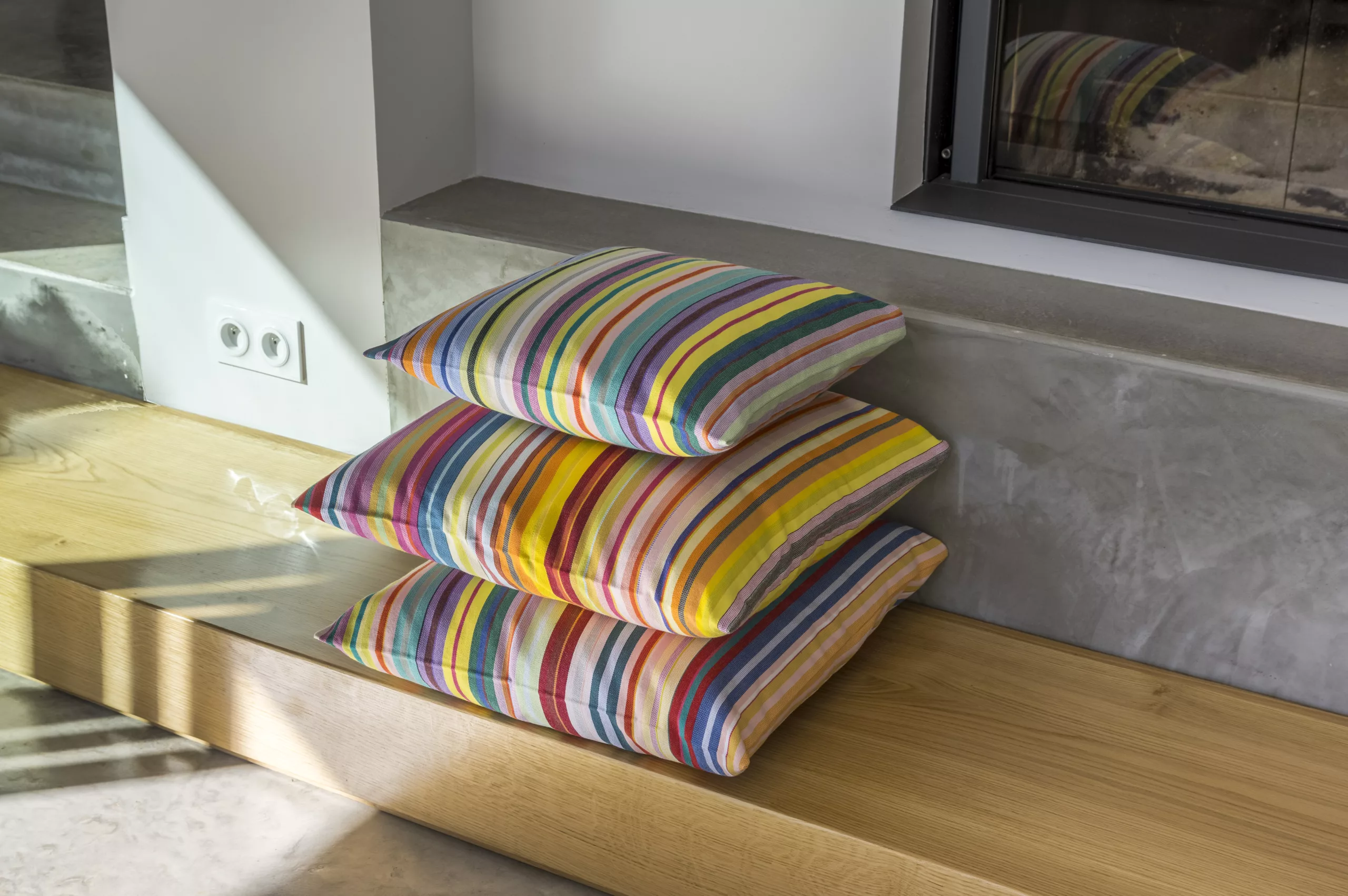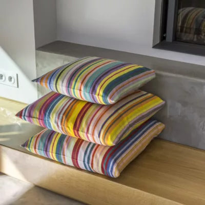 Les coussins présentent des motifs uniques grâce aux rayures asymétriques de la toile, et chaque taille offre plusieurs variations. Notez que les photos sont non contractuelles : le rendu des motifs peut différer selon les dimensions choisies.