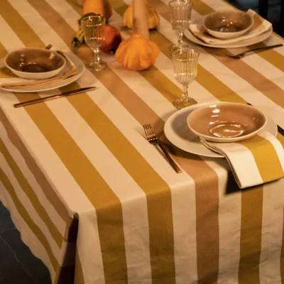 Fabriquées avec des fils de haute qualité en fibres végétales et naturelles, les toiles sont tissées sur des métiers anciens, offrant une qualité inégalée et des designs uniques. Une nappe durable et authentique, pensée pour embellir vos tables au quotidien.