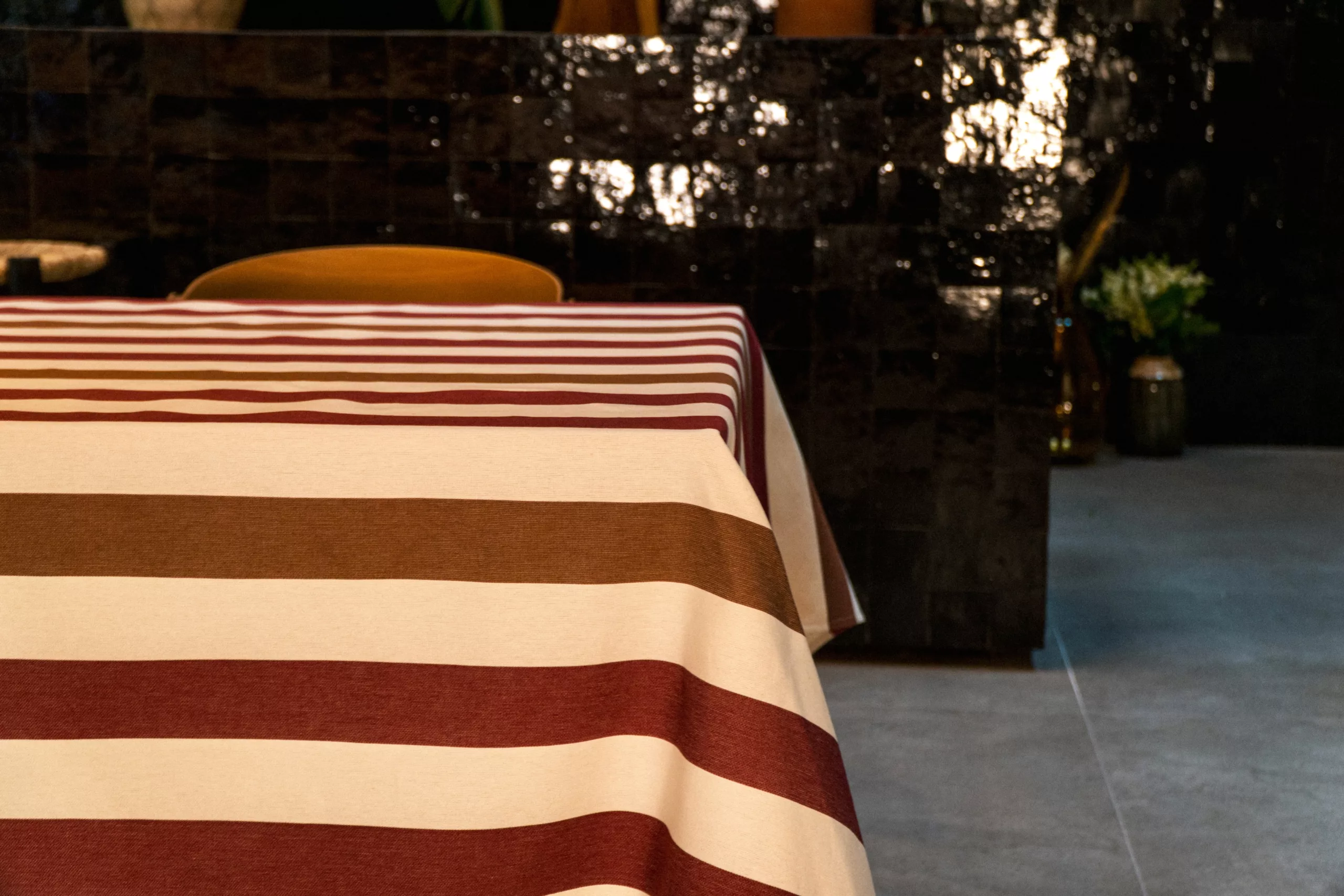 Pour les tables rondes, nous fabriquons des nappes de forme carrée.