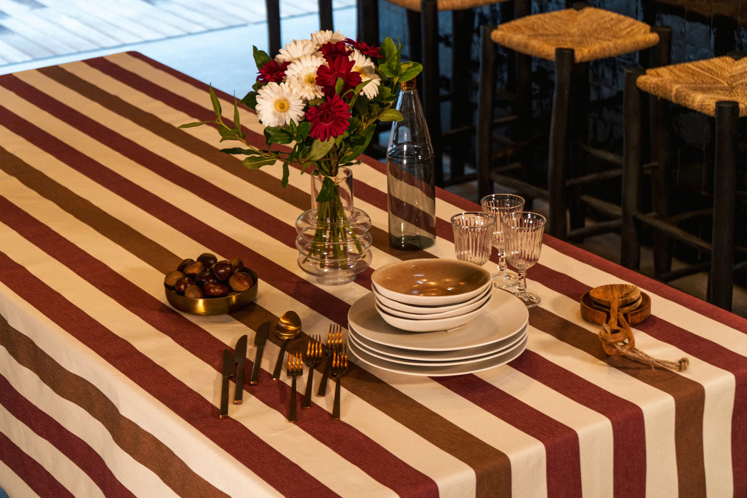 La nappe est confectionnée avec un tombé de 25 cm de chaque côté.