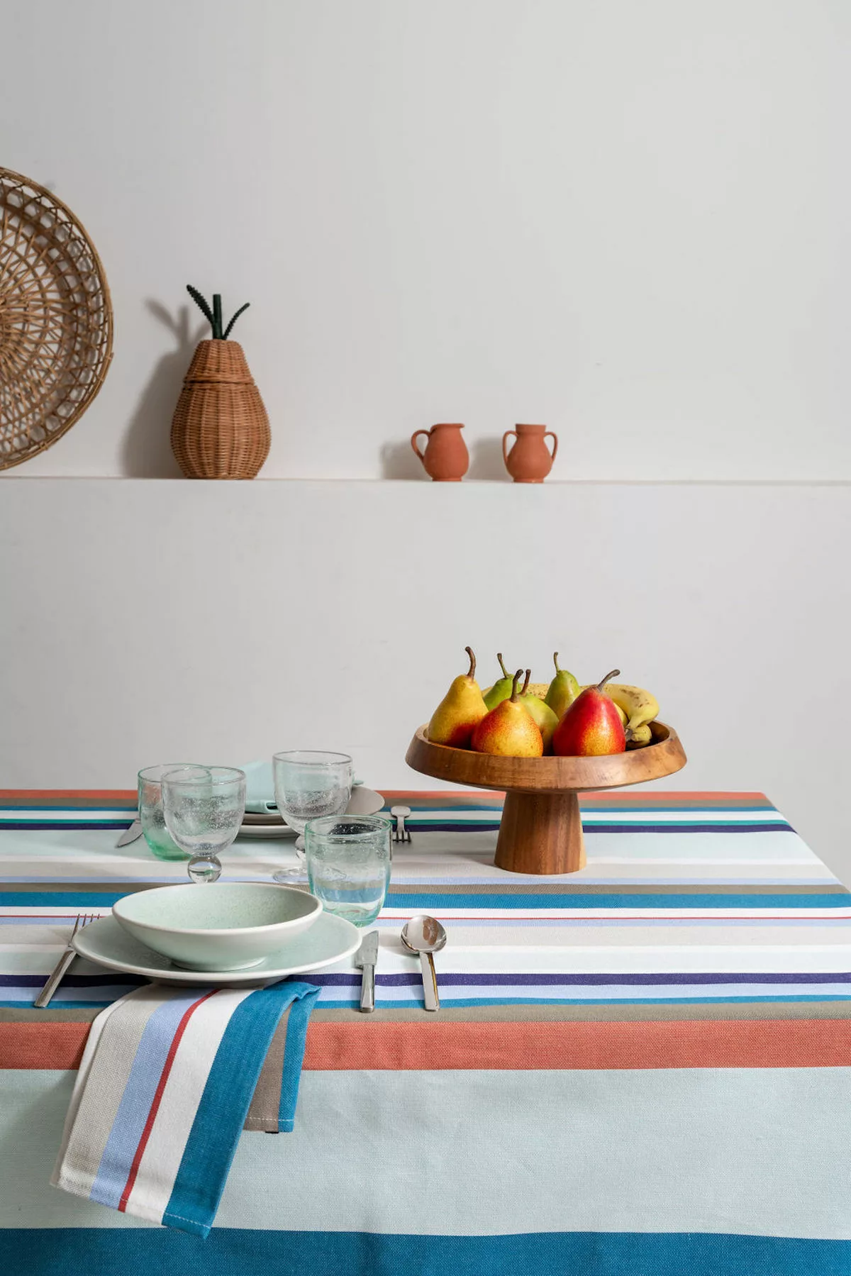 Fabriquées avec des fils de haute qualité en fibres végétales et naturelles, les toiles sont tissées sur des métiers anciens, offrant une qualité inégalée et des designs uniques. Une nappe durable et authentique, pensée pour embellir vos tables au quotidien.
